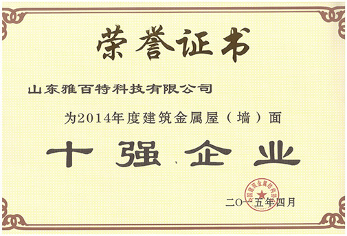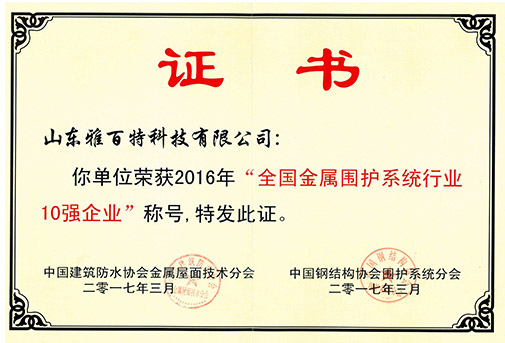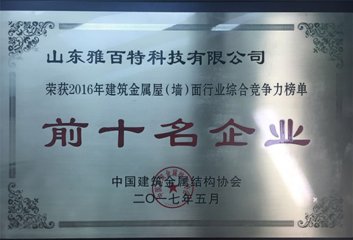 • 2016年度建筑金屬屋(墻)面前十名企業