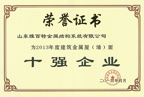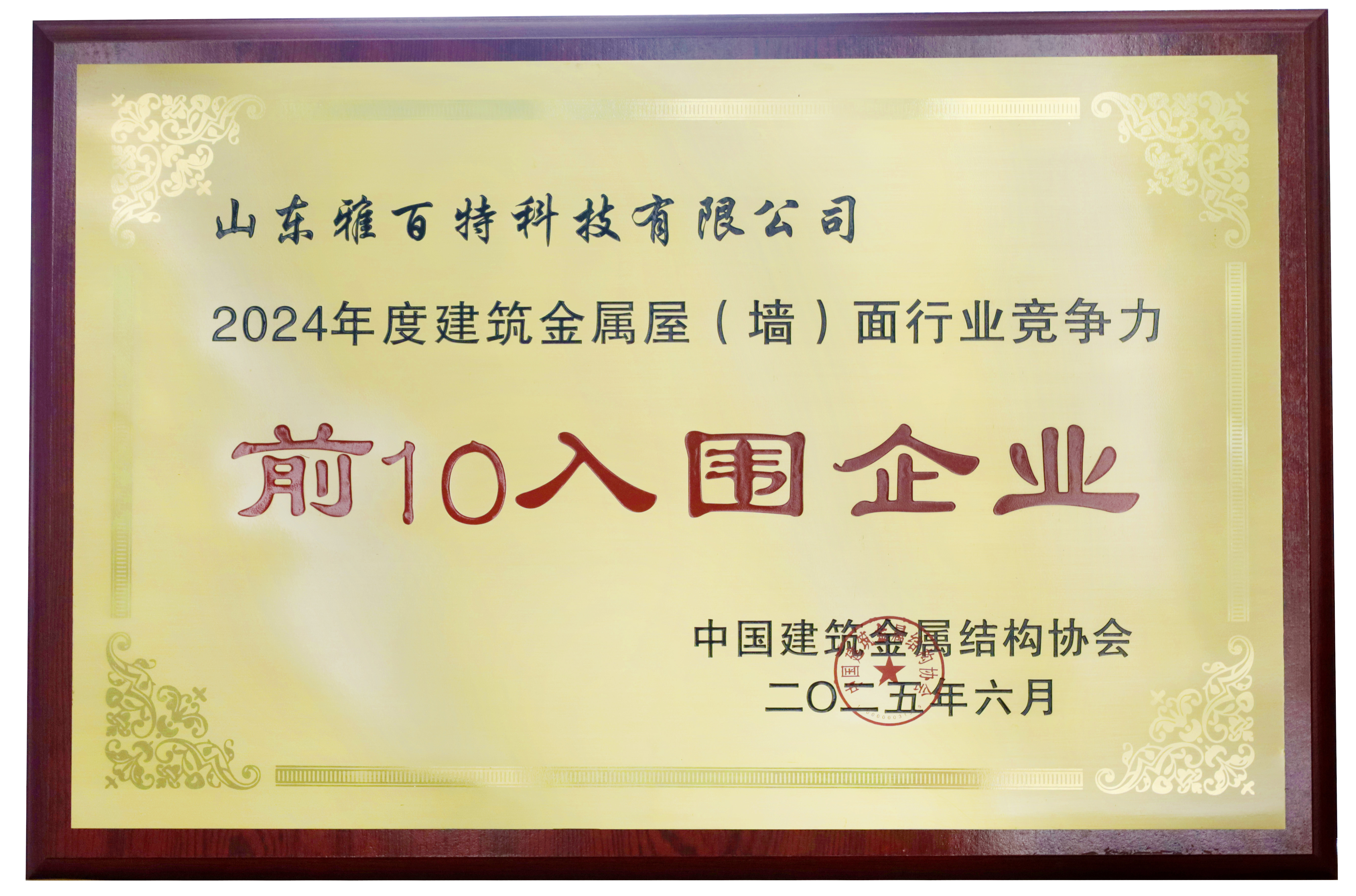 • 2024年度建筑金屬屋(墻)面行業競爭力 前10入圍企業