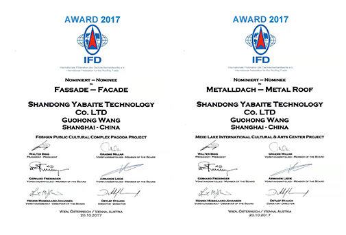 • 兩項工程榮獲IFD國際屋面工程大獎唯一提名獎 。