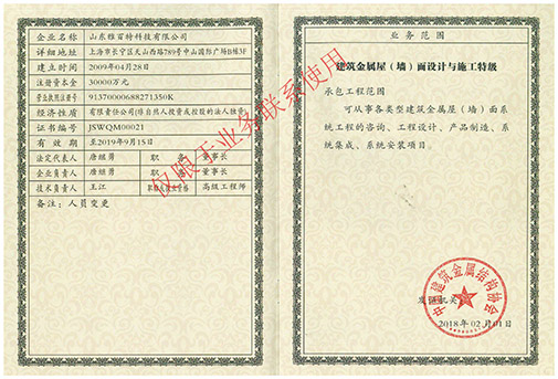 公司擅長“新、奇、特”大跨度復雜異形建筑,服務對象包括國內外大型機場、高速鐵路、超大型會展綜合體、文化體育場館等城市功能性建筑,為全球客戶提供優質產品和技術服務。公司已取得金屬屋(墻)面設計與施工特級資質、中國金屬圍護系統承包商特級資質、鋼結構工程專業承包壹級資質。