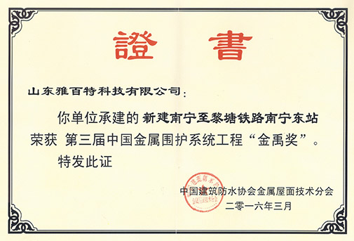 • 新建南寧至黎塘鐵路南寧東站金禹獎