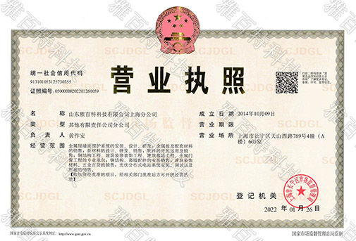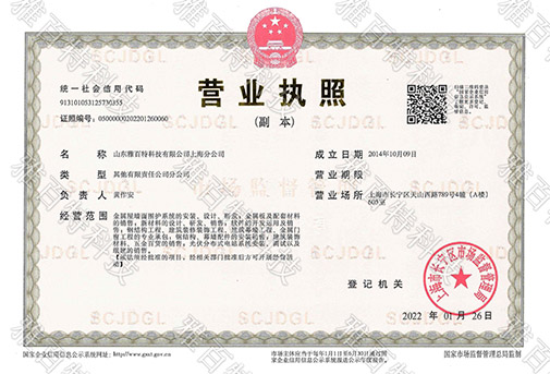 • 山東雅百特上海分公司營業執照復印件(副本)