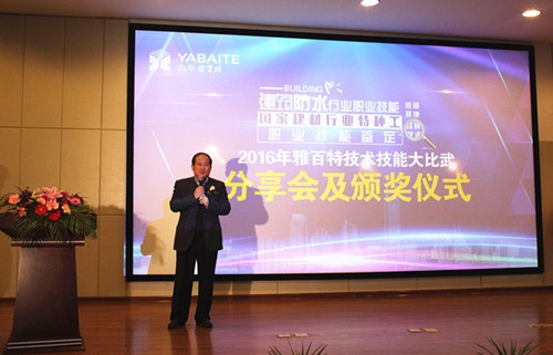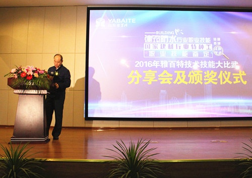 雅百特由張庭代表董事長陸永發言。他表示,感謝行業的信任和支持。雅百特一直以來以推動行業發展為責,此次“建筑防水行業職業技能培訓基地”、“國家建材行業特種工職業技能鑒定培訓基地”建立,將不遺余力加強培訓隊伍建設,為行業和社會培養真實掌握知識技能及技術的人才,逐步建立起專業化職業化建筑防水隊伍,促進行業有序健康發展和產能升級。