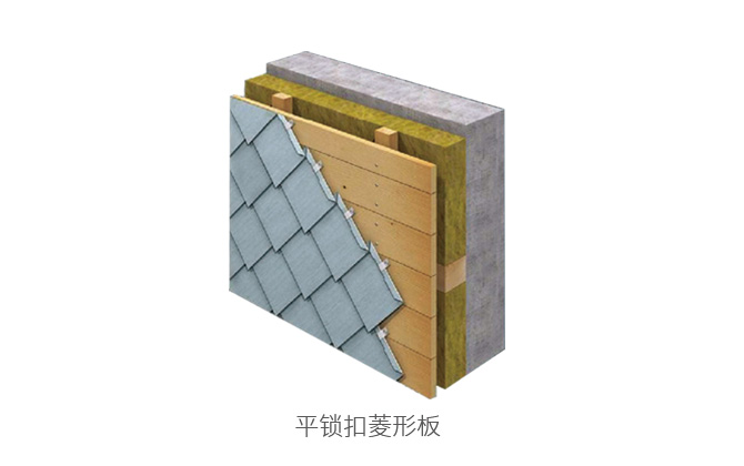 平鎖扣金屬板系統(tǒng)是由金屬瓦片有序鎖扣拼接而成,扣片的布局具有極強的視覺效果,此系統(tǒng)產(chǎn)生的光學金屬質(zhì)感在大面積的幕墻上尤其顯現(xiàn)。金屬瓦片系列包括矩形和菱形兩種,對于具有各種曲目類型和復雜幾何構(gòu)造的建筑物,也能實現(xiàn)安全可靠并極具視覺效果。本系統(tǒng)不僅適用于屋面、幕墻,也適用于屋頂窗、煙囪頂和屋頂邊緣等區(qū)域。